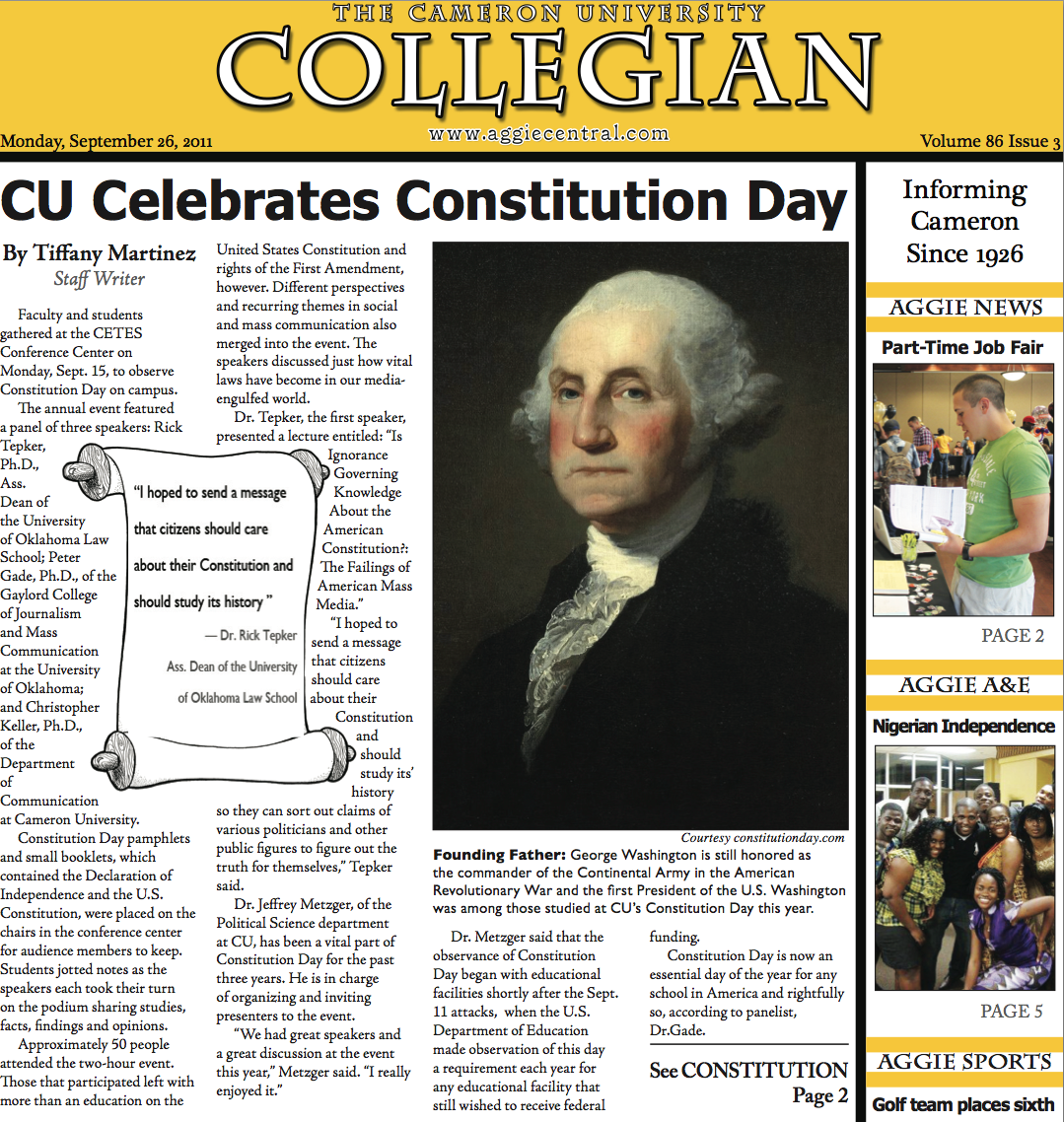 Click here to read or download the Sept. 26, 2011 edition of the Cameron University Collegian. This is the third issue of the Collegian for the Fall 2011 semester.