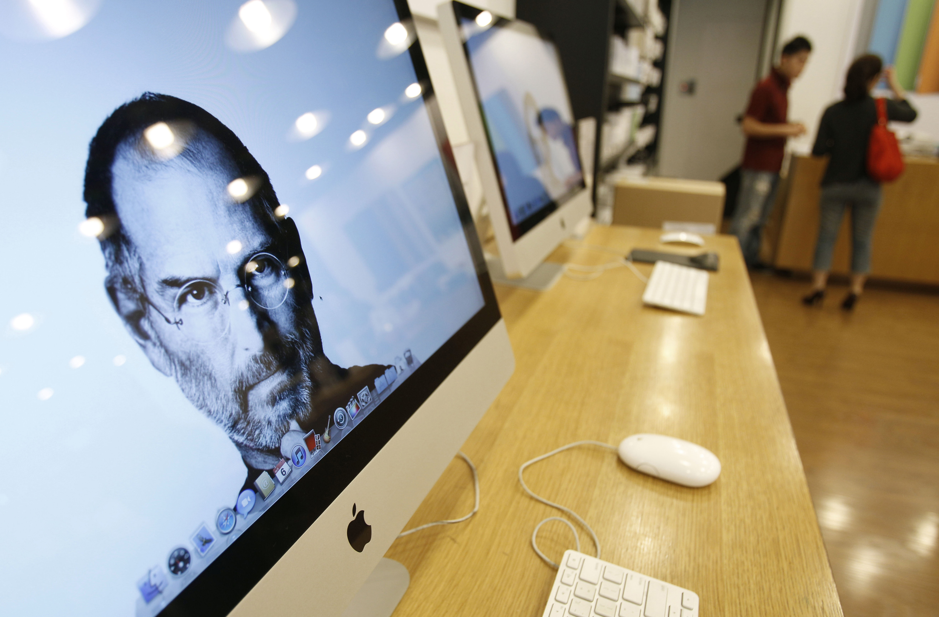 Image: Portraits of the late Steve Jobs, co-founder of Apple Inc., illuminate computer monitors in an Apple retail store, in Taipei, Taiwan, Thursday, Oct. 6, 2011. Taiwanese rivals and partners of Apple Inc. lauded company founder Steve Jobs on Thursday, and news of his death dominated television coverage in the high-tech powerhouse. (AP Photo/Wally Santana)