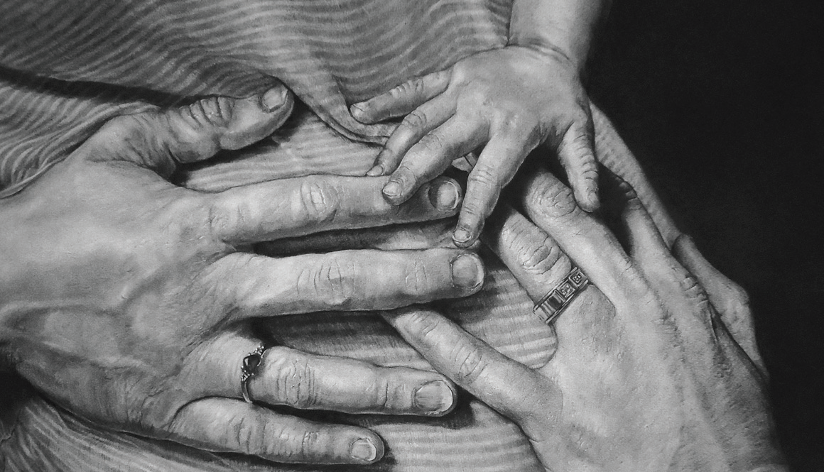 “The composition is a close up of my hand, my wife’s hand and my son’s hand, all resting on my wife’s pregnant stomach. This piece was my assignment from Drawing II last spring,” he said. “I like to portray my family in my art, as they are the most important thing to me and they are a deep well of inspiration.”