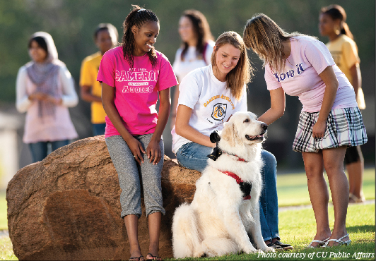 Thomas said that she tries to have Lilly on campus as much as possible, generally three or four days per week. Some events, though, such as the CU Health Fair or Disability Awareness Day, where many people approach and pet Lilly is by in a short time, makes Lilly extremely tired.