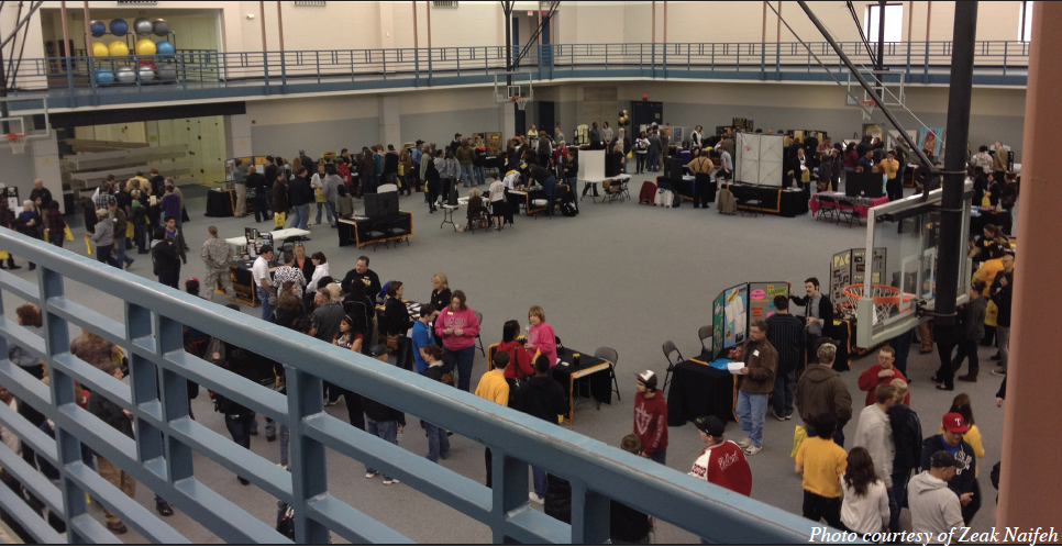 The opening session finished at 11 a.m. and students and parents were ushered to the browsing fair in the Fitness Center, where various academic departments and student organizations had booths meant to provide information about specific courses and organizations.