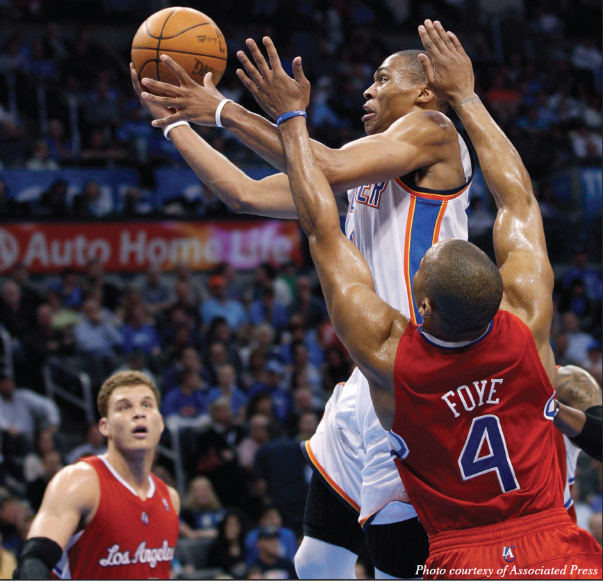 At the start of the second half the Thunder were able to maintain their lead as Westbrook drained a three with just under nine minutes remaining. Again the Clippers clawed their way back behind free throws and a Blake Griffin dunk over Thunder forward Serge Ibaka. Heading into the fourth quarter the Thunder found their lead down to four points, 80-76.